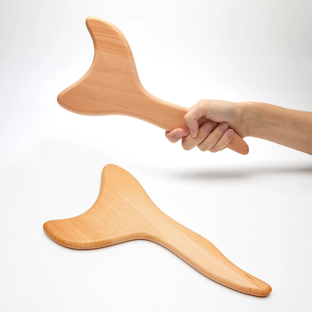 Natural wooden therapy tool for deep relief and body contouring.