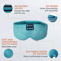 Soft silk eye mask with built-in Bluetooth headphones, designed for comfort and relaxation.
