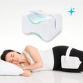 Soft memory foam pillow designed for side sleepers to support knees and improve spinal alignment.